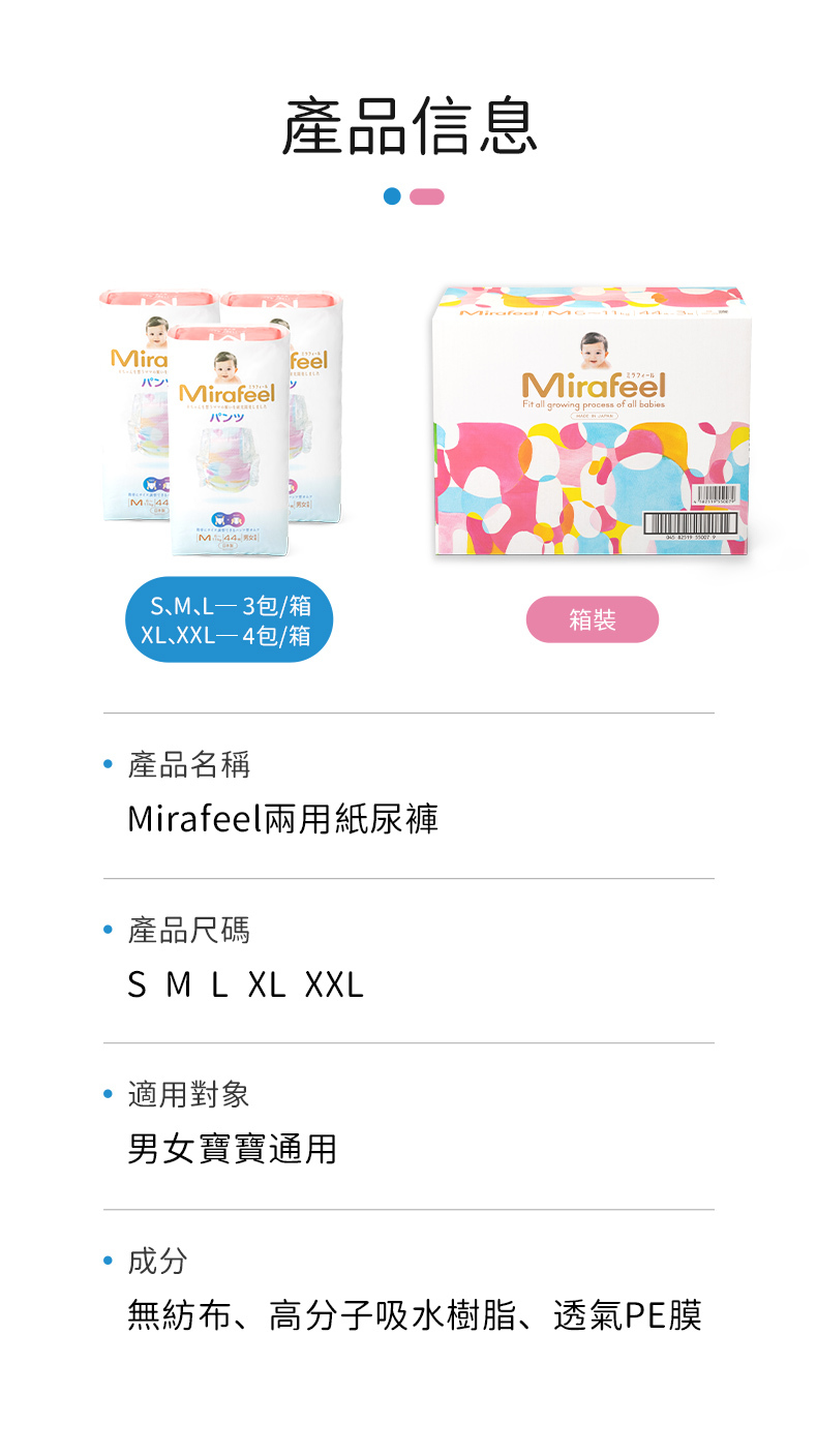 [日本製]Mirafeel 二合一紙尿褲中碼44片 (適合體重6-11kg的寶寶)